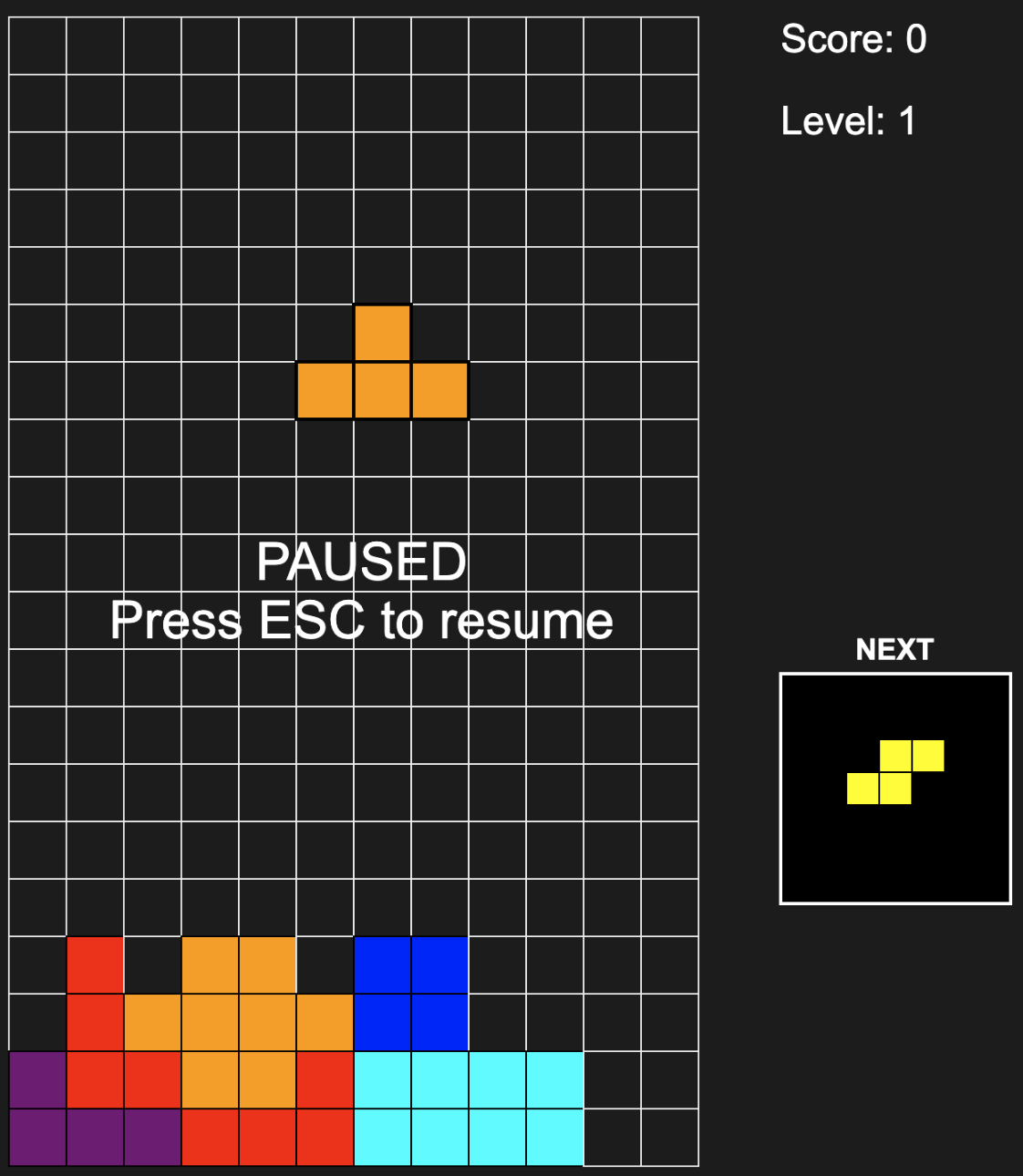 - After pressing spacebar for hard drop, then using arrow keys to move, the next block doesn't appear